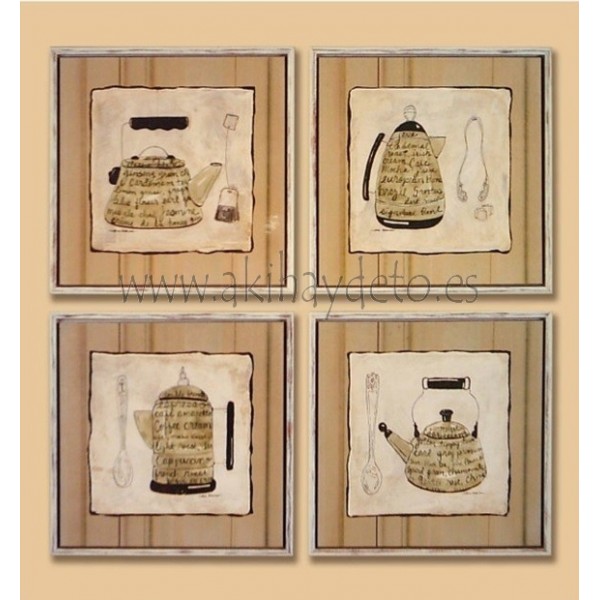Cuadro cafeteras moldura en wengué, precio en caja. Medida 24 x 24 cm.