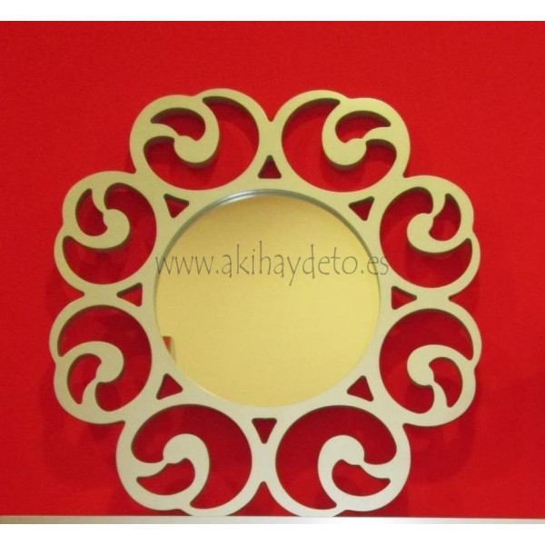 Espejo de pared en madera calado redondo color plata de diámetro 80 cm