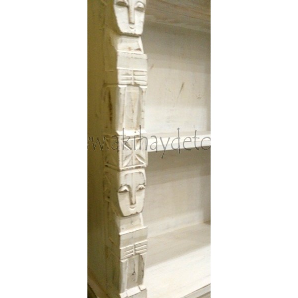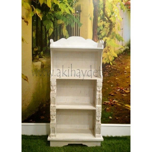 Mueble Auxiliar, estantería con 4 estantes en madera de acacia color blanco, medidas 125x26x56 cm.
