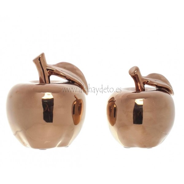 Figura manzana decorativa en cerámica color ocre, disponible en varias medidas.