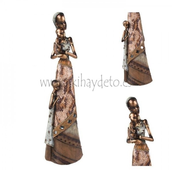 Figura decorativa, africana con bebé y niña, en poliresina de altura 42 cm.