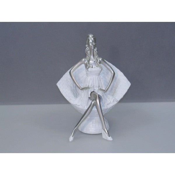 Figura decorativa en poliresina, mujer sentada sillón color blanco, altura 27 cm.