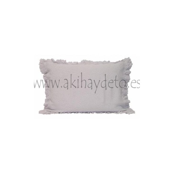 Almohada ROMANCE 50x70 cm con volante y puntilla color Topo, Algodón Stonewash (sin relleno)