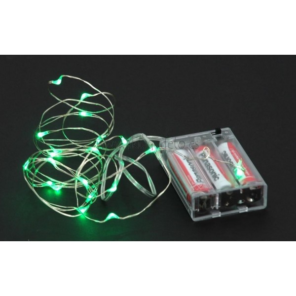 Serie Led's con 20 lámparas, luz verde. Necesita 3 pilas AA 1.5V