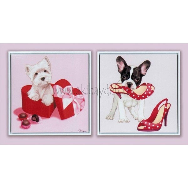 Cuadro dos modelos de perro, precio en caja. Medida 32 x 32 cm.