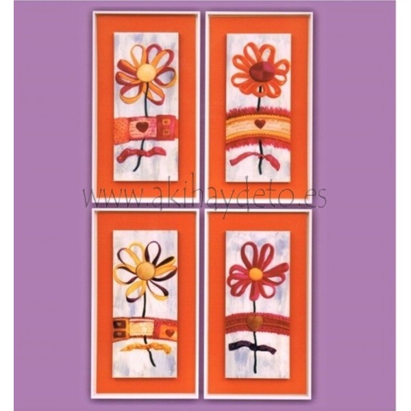 Cuadro flores en color naranja, precio en cuadro. Medida 25 x 45 cm.