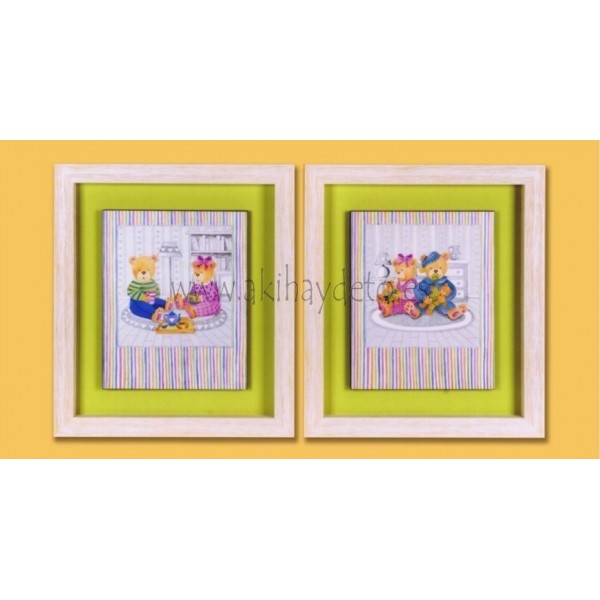 Cuadro ositos con fondo verde, precio en caja. Medida 24 x 32 cm.