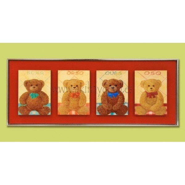 Cuadro osos con fondo rojo, precio en cuadro. Medida 30 x 75 cm.