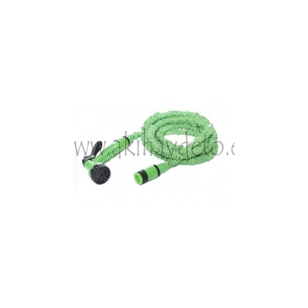 Manguera autoextensible, esta novedosa manguera puede estirarse hasta tres veces su tamaño con la presión del agua, antienredos. Disponible en varias medidas