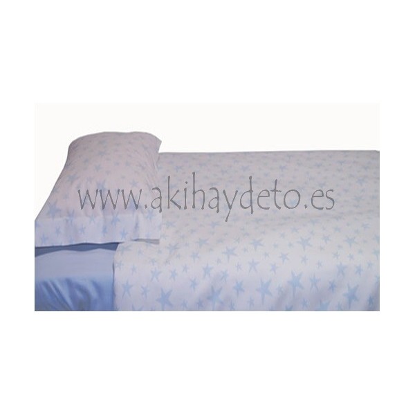 Juego funda nordica de estrellas en color azul. 100 x 120 cm.