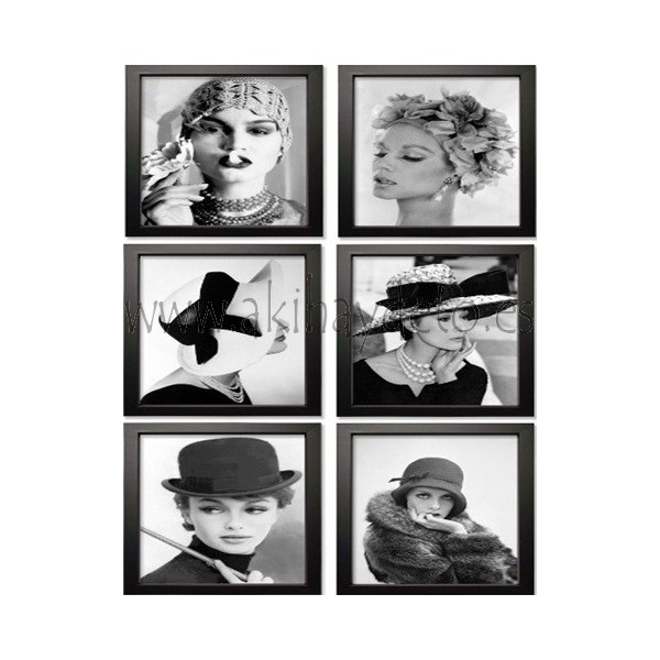 Set seis laminas mujer, marco negro. Medida 23 x 33 cm.