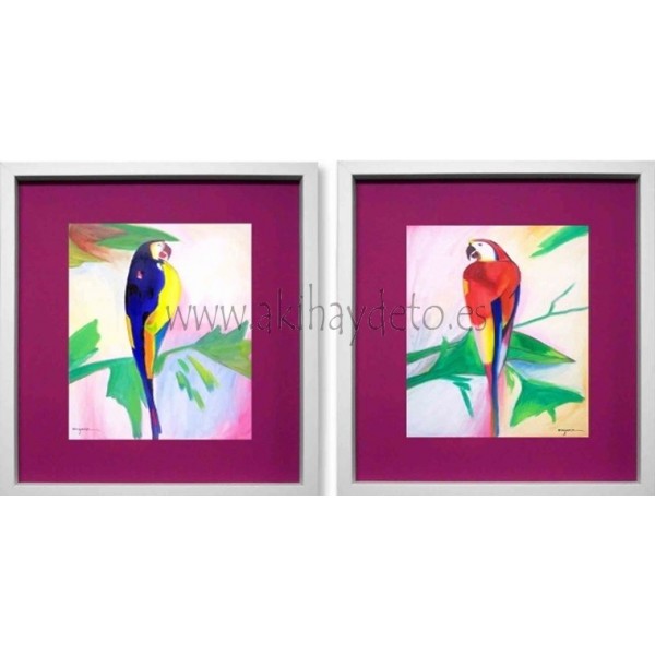 Set dos laminas pajaro. Medida 50 x 60 cm.