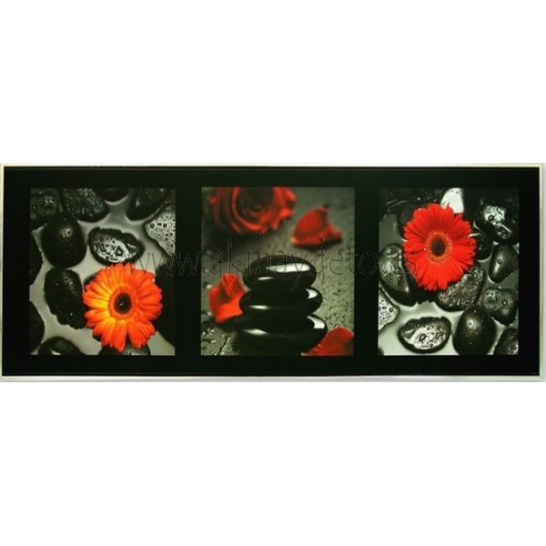 Lamina piedras, flores naranjas con fondo negro, precio en caja, Medida 31 x 91 cm.