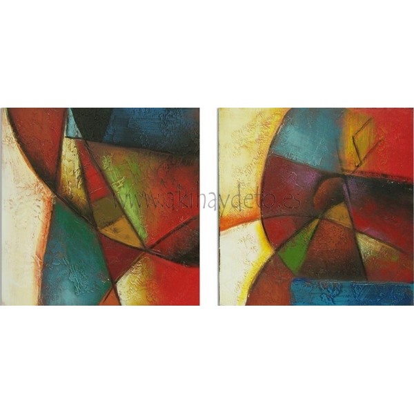 Pintura abstracta en colores rojos y azules. Medida 70 x 70 cm.