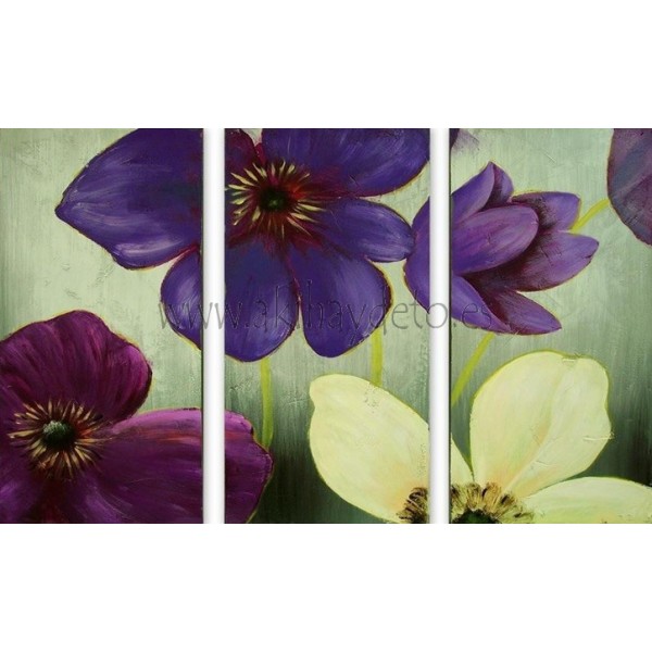 Pintura flores lila, morada. Medida 30 x 70 cm.