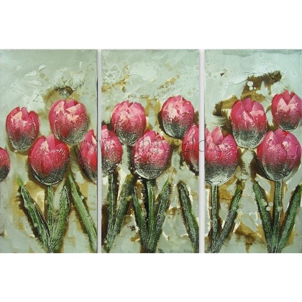 Pintura flores rosas con fondo verde. Medida 30 x 70 cm.