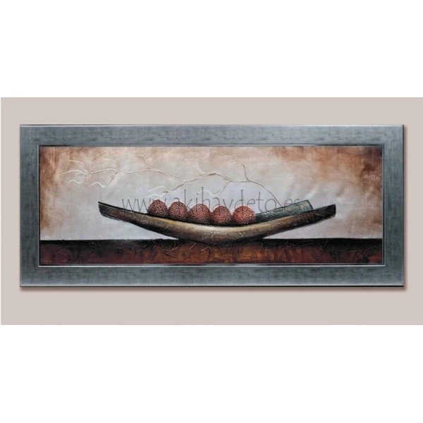Pintura centro de mesa en tonos marrones, precio en cuadro. Medida 65 x 165 cm.
