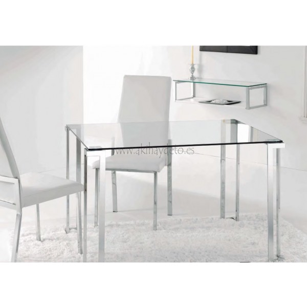 Mesa de comedor. Patas metalicas cromadas. Cristal templado translucido. Color transparente cromo. 120 x 80 cm.
