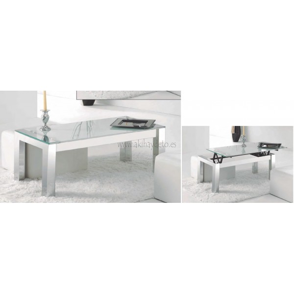 Mesa centro elevable. Cristal templado color. Diferentes colores. 112 x 50 cm.