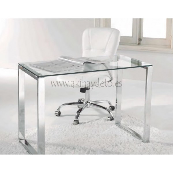 Mesa de estudio. Patas metalicas de gran resistencia. Topes regulables. Cristal templado translucido. 100 x 50 cm.