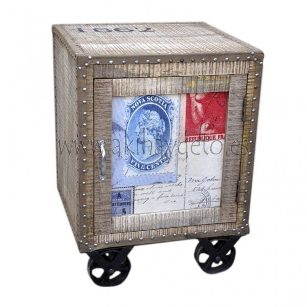 Mesilla de madera con ruedas modelo ANTIC SELLOS, medidas 50 x 50 x 70 cm.