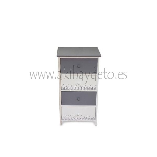 Mueble con cuatro cajones color blanco/gris, medidas 40x29x73 cm.
