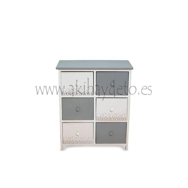 Mueble con seis cajones color blanco/gris, medidas 54x29x64 cm.