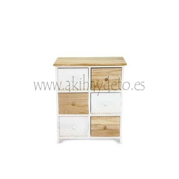 Mueble con seis cajones color blanco/marrón, medidas 54x29x64 cm.