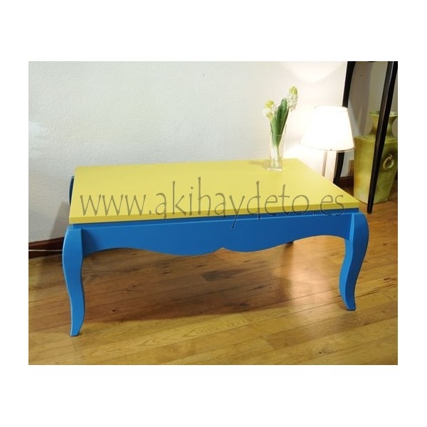 Mesa de centro en madera lacada, de medidas 110 ancho x 65 fondo x 45 alto cm y disponible en varios colores.