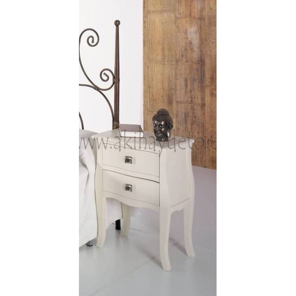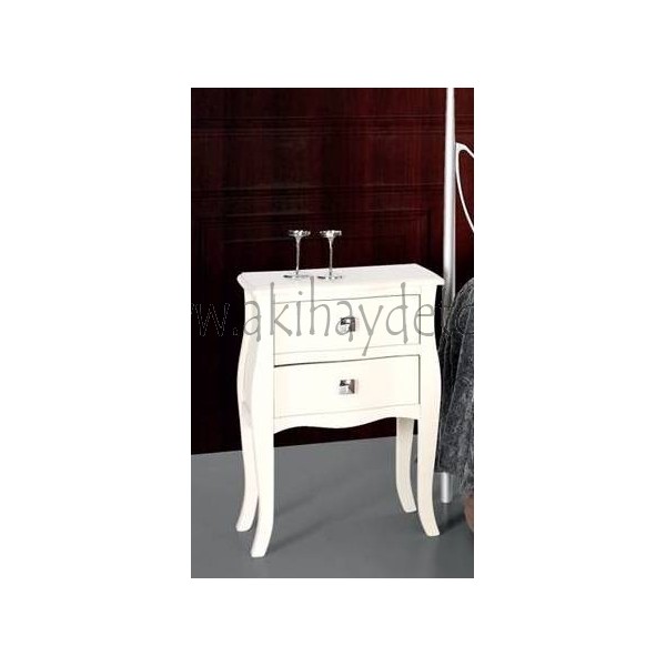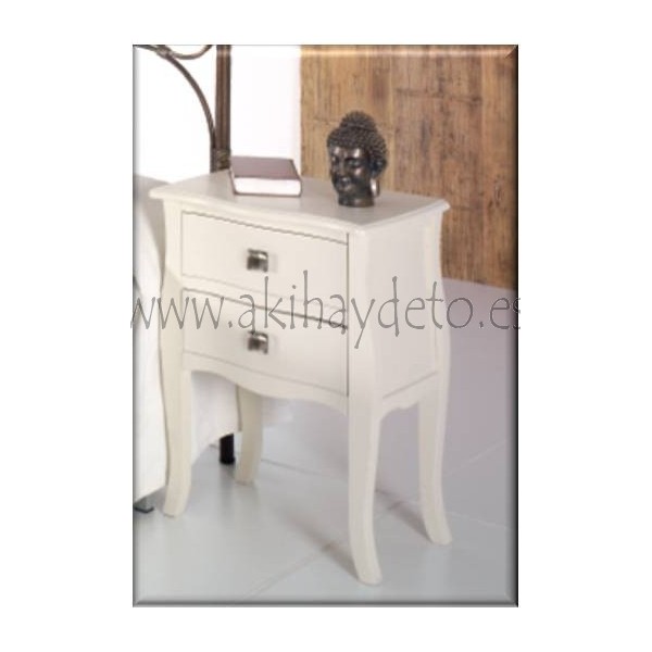 Mesita con dos cajones en madera lacada blanca, de medidas 73 x 52 x 36 cm