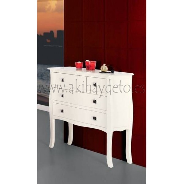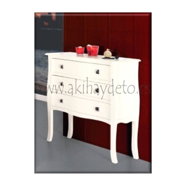 Cómoda con tres cajones de madera lacada blanca, de medidas 92 x 92 x 36 cm.