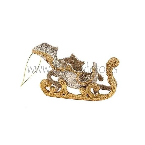 Decoración para el árbol de Navidad, Trineo Colgante en Dorado, de medidas 10 x 8 x 4 cm