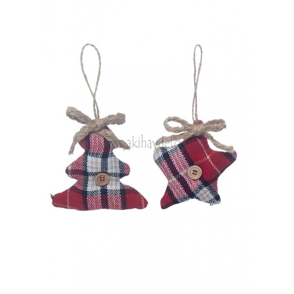 Set de dos adornos decorativos en tela para colgar especialmente en el Árbol de Navidad, 10 cm aproximadamente de altura.