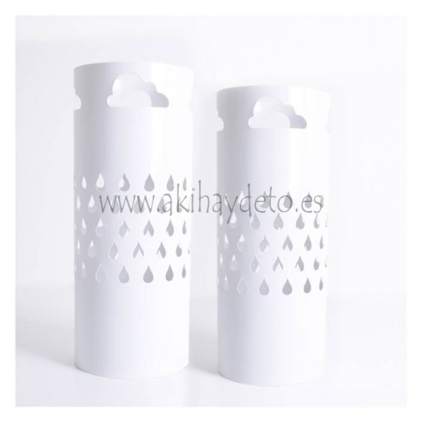 Set de 2 paragüeros de metal calado "gotas", 20 cm. de diámetro, 49 cm. de altura (grande). Color blanco.