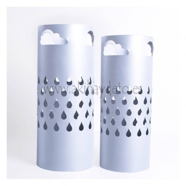 Set de 2 paragüeros de metal calado "gotas", 20 cm. de diámetro, 49 cm. de altura (grande). Color gris claro.
