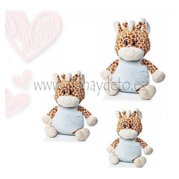 Peluche jirafa 0+ meses en color azul, disponible en varias alturas, cumple con la normativa EN 71 CE, ideal para bebés o recién nacidos.