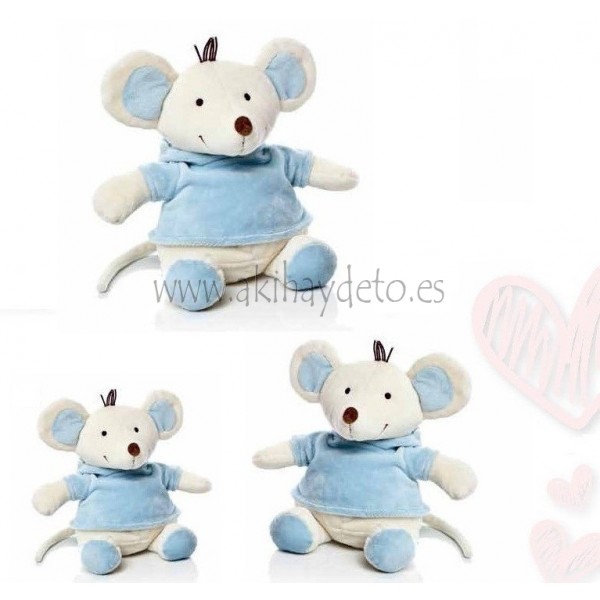 Set dos peluche ratón 0+ meses en color azul, disponible en varias alturas, cumple con la normativa EN 71 CE, ideal para bebés o recién nacidos.