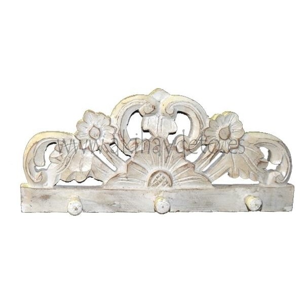 Percha 3 pomos en madera de acacia color blanco, medidas 40x18 cm