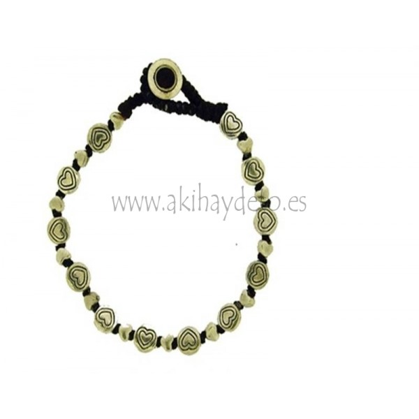 Pulsera cordón trenzado con decoraciones de corazón.