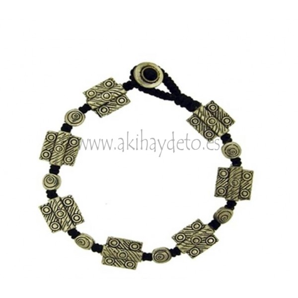 Pulsera cordón trenzado con decoraciones de metal cuadradas.