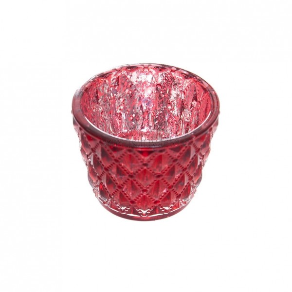 Portavelas tipo T-light de vidrio color rojo, medidas 7,5 x 6 cm.