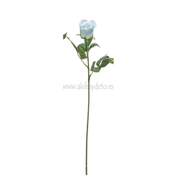 Capullo Rosa color azul, varilla de 60 cm de altura, flor artificial.