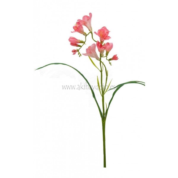 Fresia x2 color rosa, varilla de 56 cm de altura, flor artificial.
