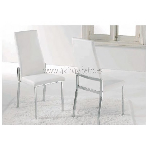 Set 4 sillas de comedor. Estructura metalica cromada de alta resistencia. Piel sintetica diferentes colores. 105 x 51 x 45 cm.