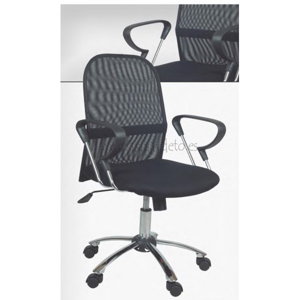 Silla giratoria. Regulable en altura, mecanismo basculante con bloqueo. Tejido 3-D transpirable. Color negro.