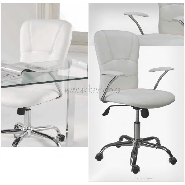 Silla giratoria. Regulable en altura, mecanismo basculante con bloqueo. Tejido simil piel. Diferentes colores.