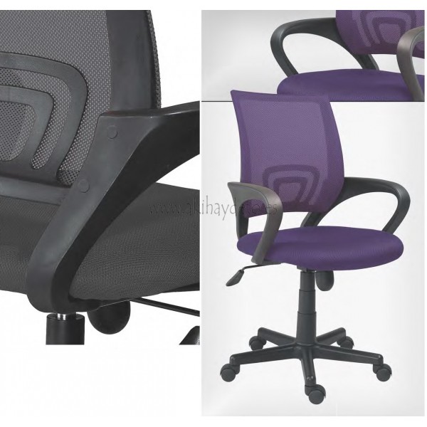 Silla giratoria. Regulable en altura, mecanismo basculante con bloqueo. Tejido 3-D transpirable. Diferentes colores.