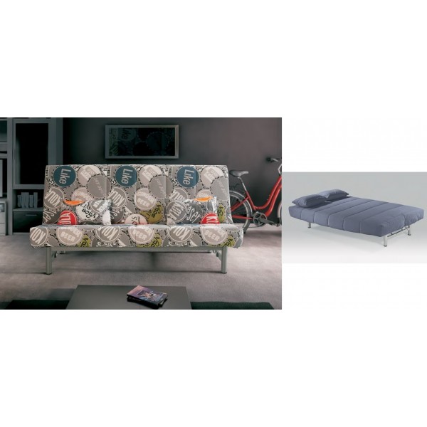 Sofa sistema de apertura bisagra presion, medidad colchon 120 x 190 cm. Espuma poliuretano. Tejido edredon chapas verdes.