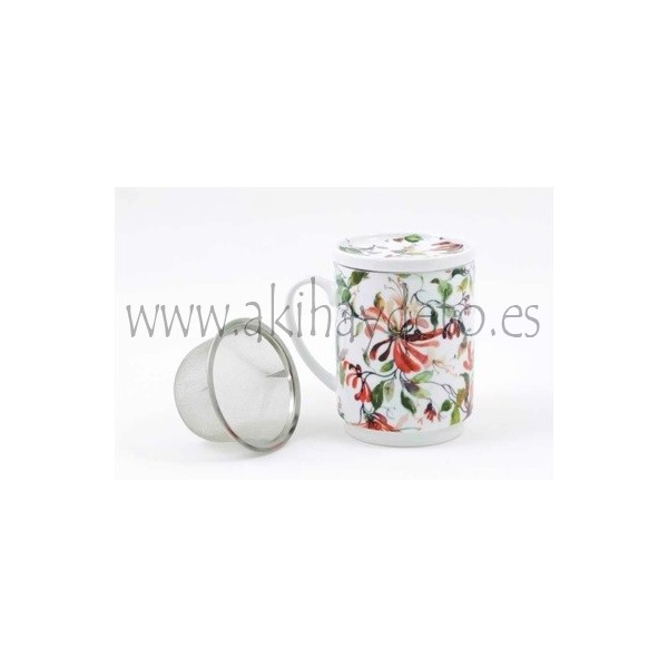 Tisana de porcelana con filtro tapizada modelo Honey, taza para infusiones.