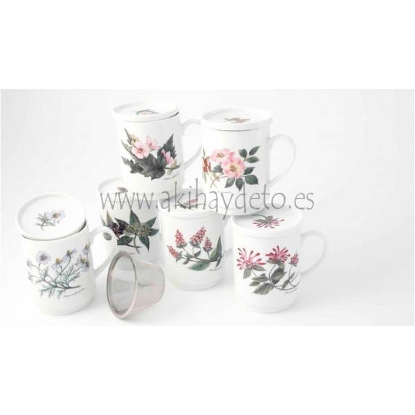 Tisana de porcelana con filtro modelo Botánica Medicinal, taza para infusiones.